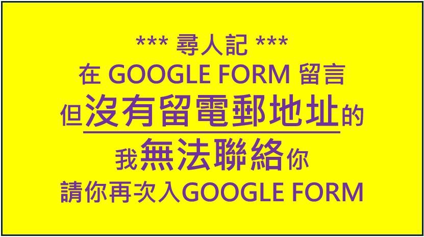 請去 GOOGLE FORM ==>(NEW LINK)。